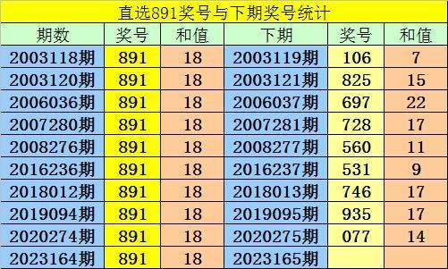 第2023164期3D奖号为:891,历史上该号码直选开出10次,下期号码分别为:106、825、697、728、560、531、746、935、077。