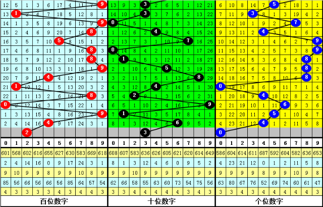 体彩排列三历年第100期开出奖号分别为:127、451、941、757、335、718、232、489、764、269、536、037、813、830、388、064、276。统计详见下表: