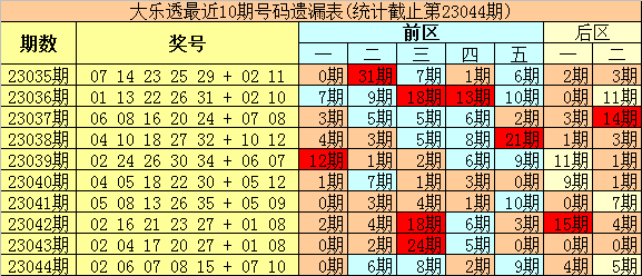 大乐透第2023045期定位遗漏分析: