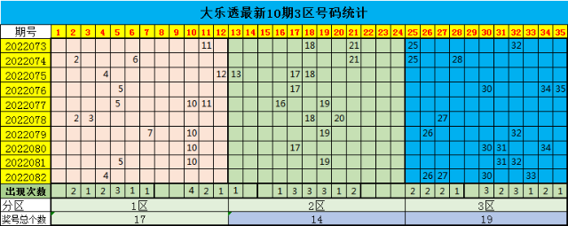 三区(一区1-12,二区13-24,三区25-35)出号个数统计: