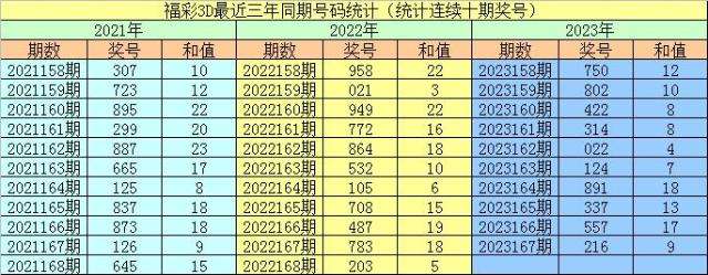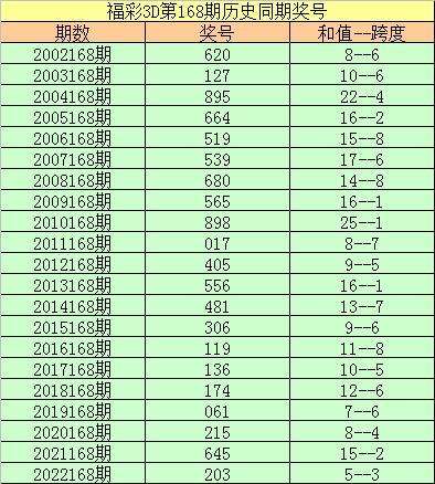 福彩3D上期奖号为216,去年同期与今年同期前20期奖号对比。