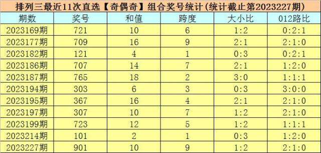 开奖回顾:排列三第2023227期开出奖号:901,类型为组六,和值为10,奇偶比为2:1,大小比为1:2,跨度为9。