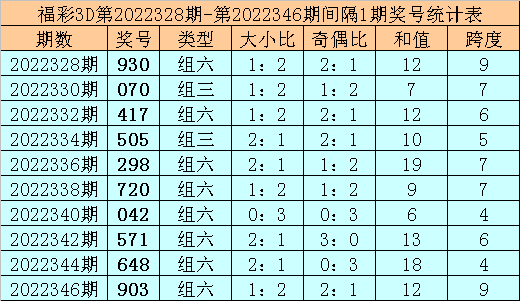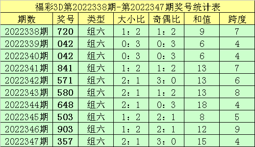 上期回顾:福彩3D第2022347期奖号:357。