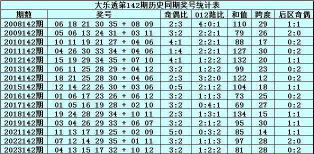 水镜体彩大乐透第2024142期历史同期奖号分析: