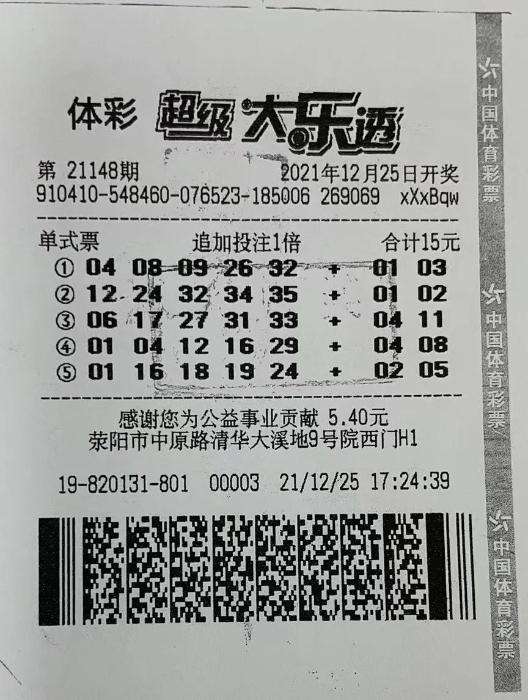 12月27日上午,荥阳大奖得主现身河南省体彩中心领奖。他的中奖彩票是一张15元5注号码的单式追加票,出自荥阳市中原路清华大溪地9号院西门4119820131体彩实体店,其中第四注号码击中当期大乐透一等奖。