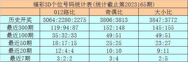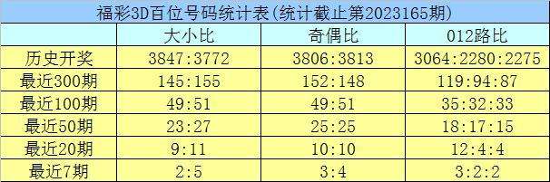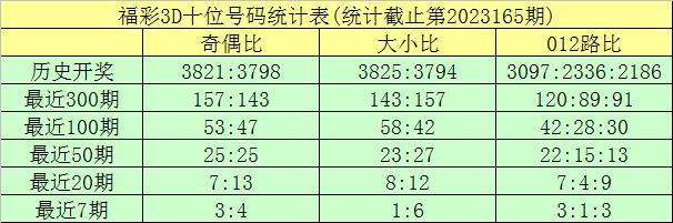 开奖回顾:福彩3D第2023165期奖号为:337。奖号形态开出组三,奇偶比开出3:0,012路比为2:1:0,大小比为1:2。