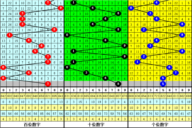 从以上统计可以看出,百十位两码合差6与6同时出现之后其下期两码合差表现最热的4个分别为:1349,本期百十位两码合差可以参考这四码中的数据。