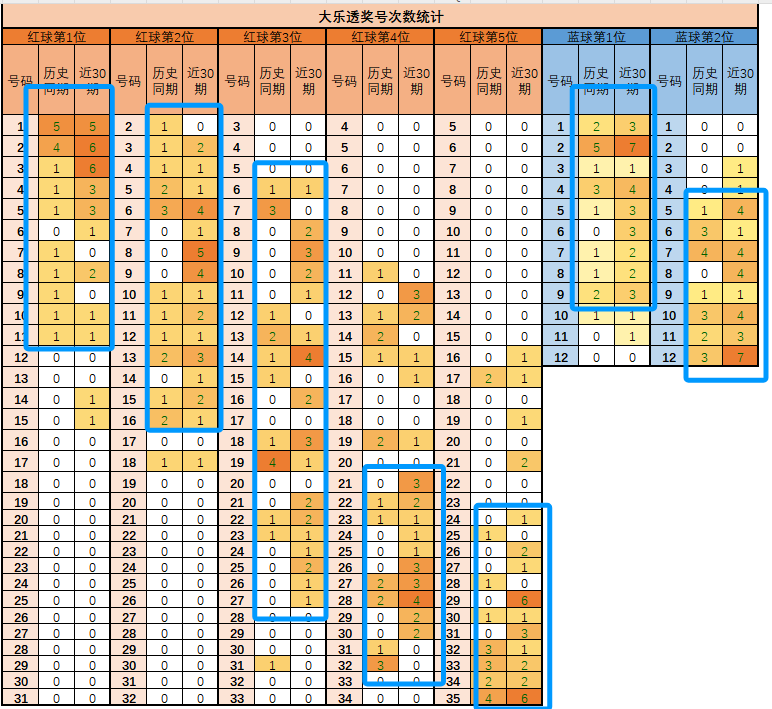 统计历史同期、近30期奖号频率,热门摸底,灵感来源