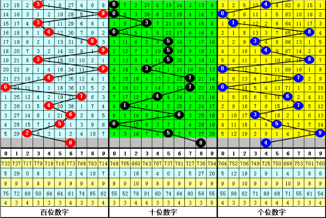 第二位上期开出奖号5,走大5点,本期该位预计再次走大,参考号码8。