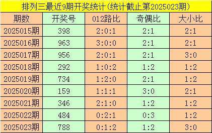 一、排列三第2025023期开出号码788,其奇偶比为1:2,大小比为3:0,号码012路比为0:1:2。该号码直选历史上出现了8次。