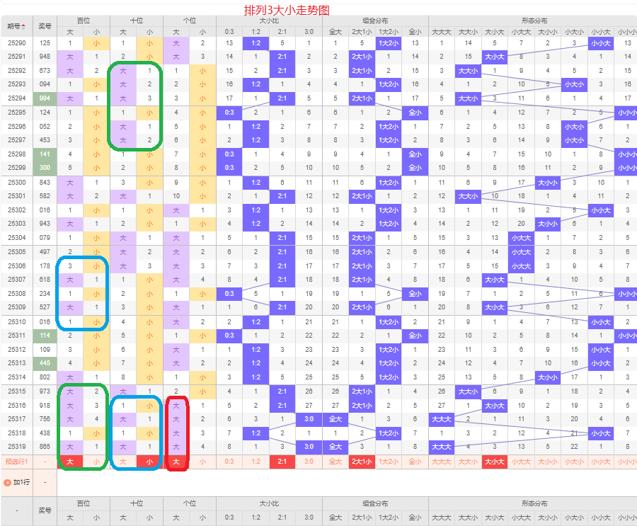 百位近两期是偶数的号码,侧重奇数的号码,侧重大号码,侧重0路和2路的号码,侧重号码02569。