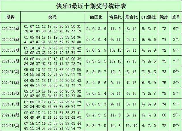 福彩快乐8第2024015期开奖回顾:07 15 17 19 20 23 26 37 41 44 49 52 54 57 59 69 71 73 74 79,其中奖号四区比为5:3:7:5,奇偶比为14:6,质合比为10:10,跨度为72,012路比为4:7:9,开出5个重号:15、17、37、41、44。