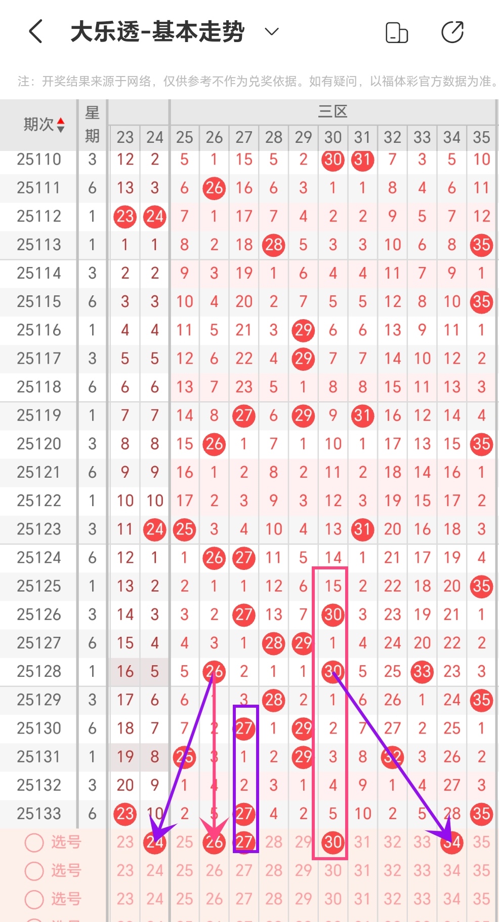 各位兄弟姐妹们大家好,我是nice,我喜欢研究数字的走势规律以及数据分析,通过同期次、同日期、同星期奖号等等出号规律进行杀号和做数据条件,红球杀号的准确率和稳定度都相当不错,首先通过上面的模块进行杀号可以做到杀红球12枚,然后将杀号带入到数据条件中进行选胆,这种方法屡试不爽帮助自己排除很多不必要的号码,将红球选号的数量控制在8-12枚,结合红球杀号带入到数据条件中选出的胆码,做胆拖组合控制成本