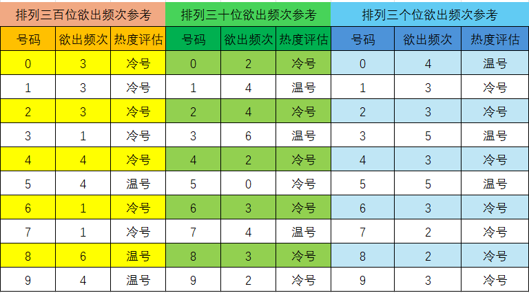 热号(出现≥7次):0, 1, 2, 4, 5, 6, 8(“2”、“6”、“8”热度显著)