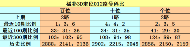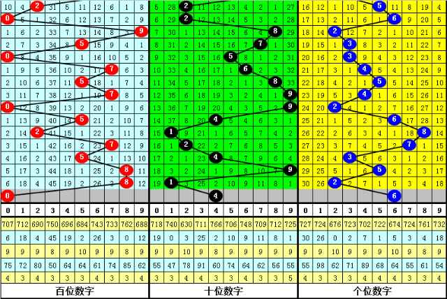 百位推荐:近10期出现1个0路号、3个1路号、6个2路号,2路号大热,0路号走势低迷。本期注意0路号,关注号码0、3、6。