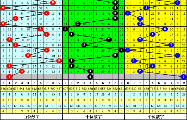 4、下期奖号012路比为9:4:8,本期参考012路比1:2:0;