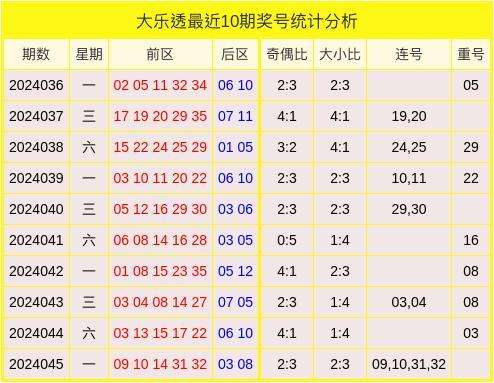大乐透最近10期奖号分析
