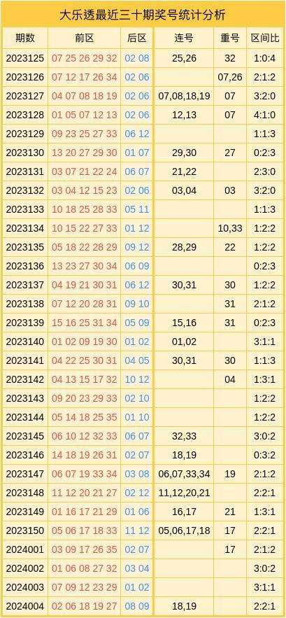 上期奖号的三区比为:2:2:1,无重号,开出1组连号18,19;后区开出【3区+3区】组合号码08、09;