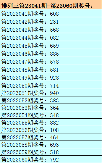 1。排列三最近十期分别开出号码:940-383-364-348-882-108-464-693-518-792,其中有6期奖号开出了上期的重复号码,本期预计第2023060期奖号:792中有重号,参考号码:9。