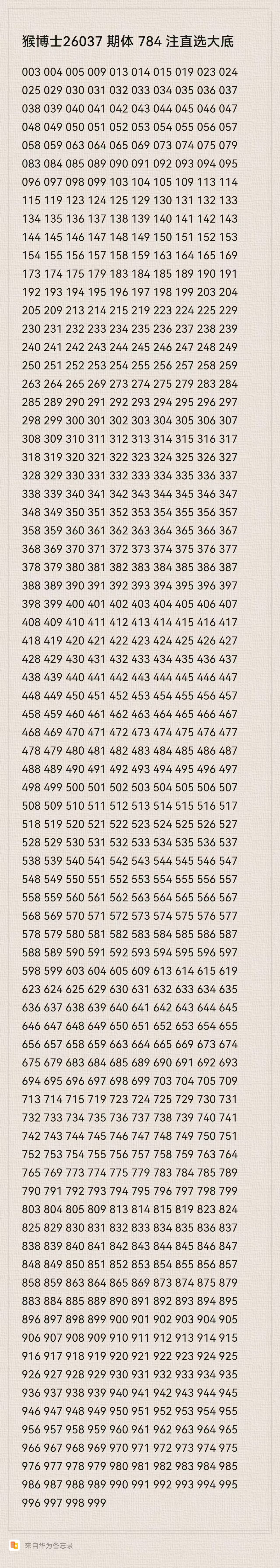 猴博士26037期排列三784注直选大底:(可以当母底用,然后进行缩水)