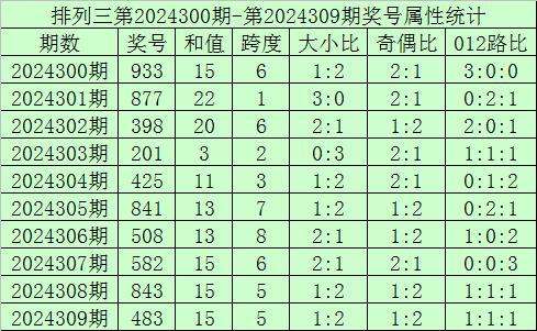 上期回顾:排列三第2024309期开奖号:483,奖号和值:15,奇偶比1:2,大小比1:2。