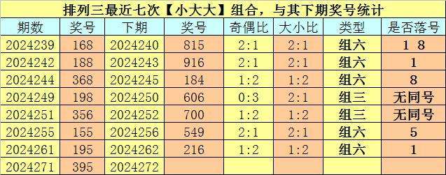 开奖回顾:排列三第2024271期开奖号码为:395。奖号类型为:组六,大小类型为:小大大,奇偶类型为:奇奇奇,无重号。