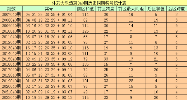袁大爷第2023040期体彩大乐透历史同期奖号分析: