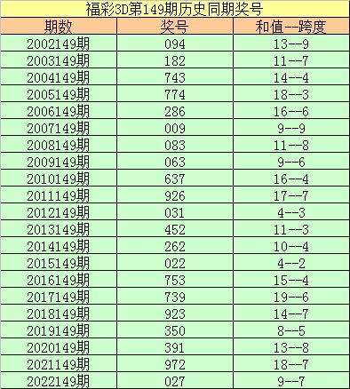 李阳福彩3D第2023149期推荐: