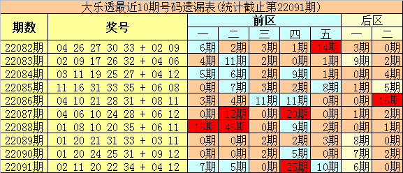 大乐透第2022092期定位遗漏分析: