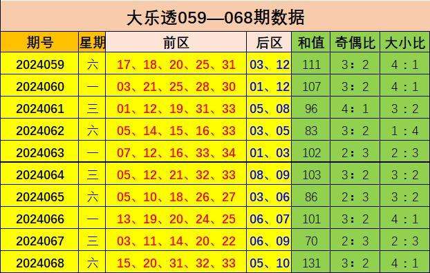 大乐透上期奖号为:前区15 20 31 32 33,后区05 10;和值131,奇偶比为3:2,大小比为4:1。