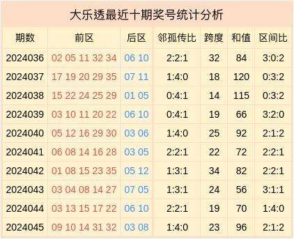 第2024046期大乐透最近10期奖号统计