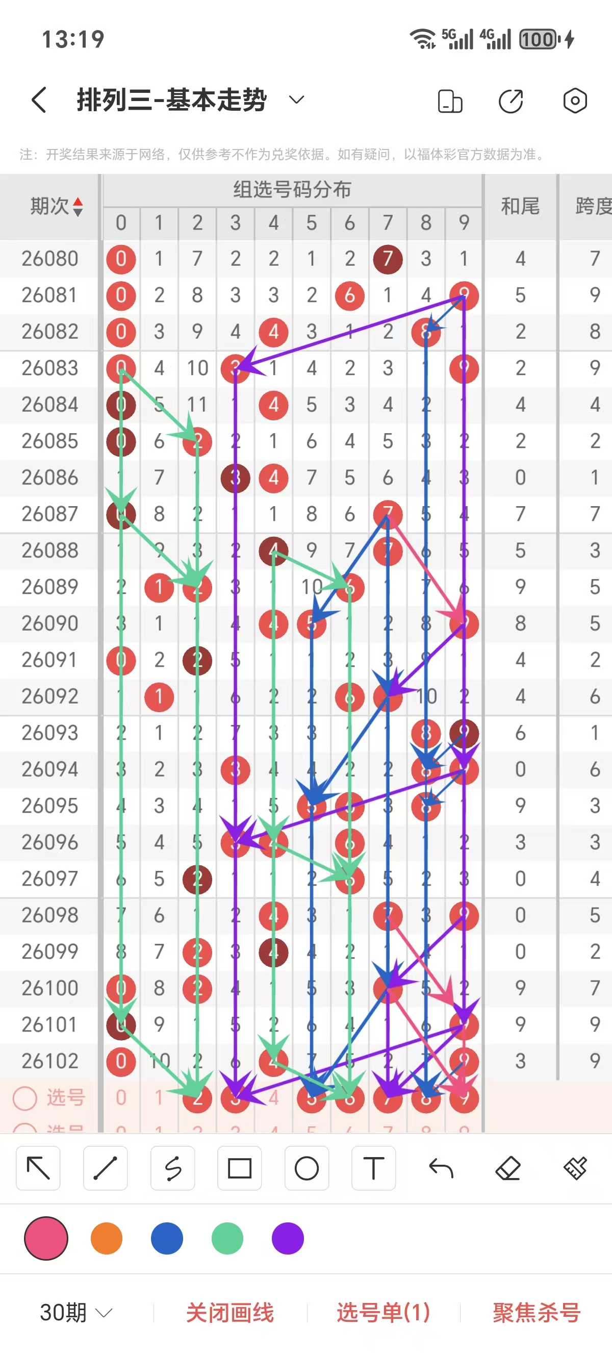 和值通常情况下在五期之内重复一个和尾的概率很高,近五期重复了09的和尾,近五期和尾为0/0/9/9/3,近期0路的和尾较热,上期0路的和尾,本期要侧重0路的和尾,其次1路和2路的和尾,和值侧重13/14/16/17/19的和值。