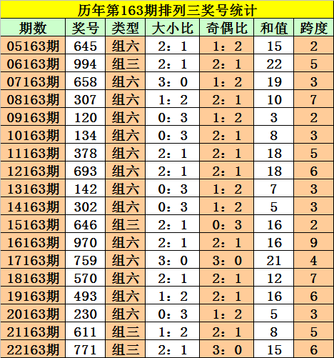 排列三第2022163期奖号:771,和值15,跨度6,大小比2:1,奇偶比3:0。