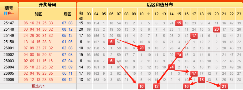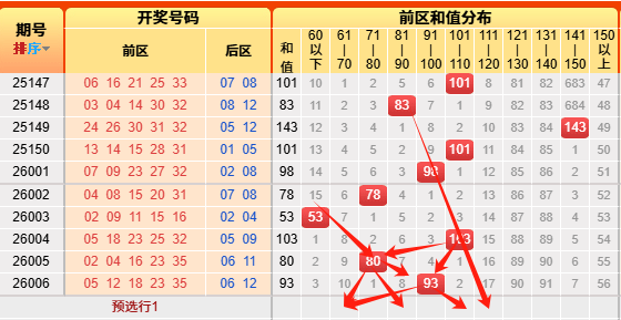 接下来我们来看前区小大、奇偶、质合、和值分布图: