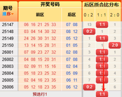 上期质合2:3,近4期中4期。来看历史次数统计0:5出现271次、1:4出现911次、2:3出现1020次、3:2出现514次、4:1出现101次、5:0出现7次,再看近十期质合比出现的次数比1:3:6:0:0:0,冷值5:0暂时放弃,再结合图形来看,本期趋势看顺路,初步选择为2:3、1:4、0:5。(具体请点击本条上车查看精选质合比 )