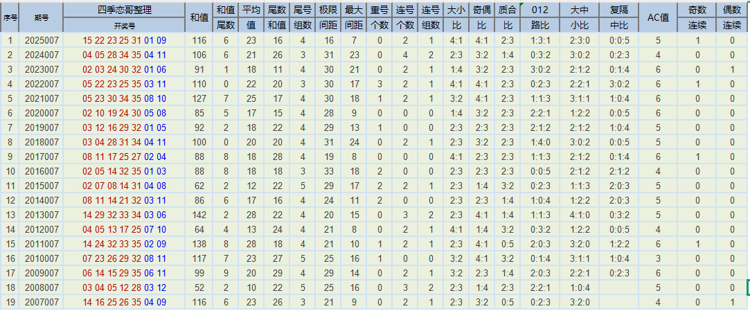 下图为大乐透彩种诞生以来每年的007期各类数据以及历年同日期开奖数据,各位大佬及彩友们请拿走~