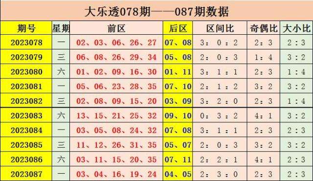 088期阿燕大乐透预测奖号:前区区间比分析