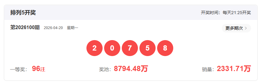 上期排列5开奖号码回顾
