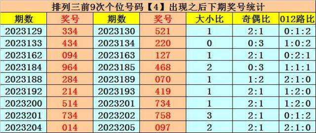 个位号码:上期奖号为小号、偶数、1路号码:4,历史上个位号码4共开出740期,前一次出现在第2023204期,上期遗漏19期再出。