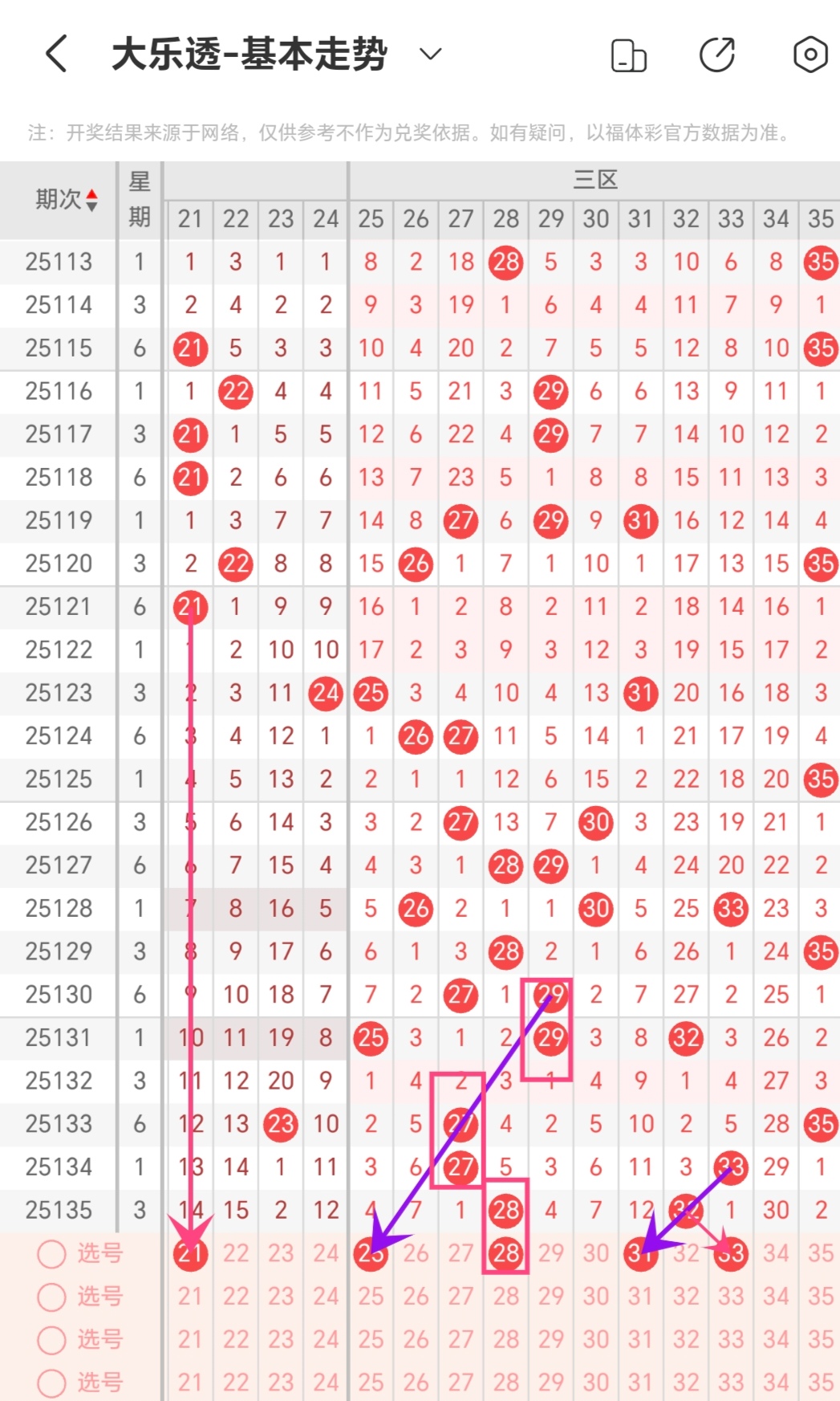 各位兄弟姐妹们大家好,我是nice,我喜欢研究数字的走势规律以及数据分析,通过同期次、同日期、同星期奖号等等出号规律进行杀号和做数据条件,红球杀号的准确率和稳定度都相当不错,首先通过上面的模块进行杀号可以做到杀红球12枚,然后将杀号带入到数据条件中进行选胆,这种方法屡试不爽帮助自己排除很多不必要的号码,将红球选号的数量控制在8-12枚,结合红球杀号带入到数据条件中选出的胆码,做胆拖组合控制成本