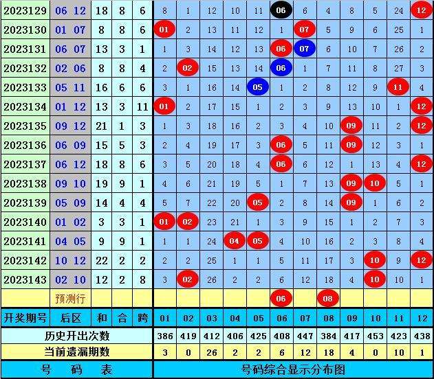 后区分析:后区上期开出2路+1路奖号02和10,最近20期后区0路奖号开出18个,1路奖号出现10个,2路奖号出现12个,最近8期后区0路奖号出现7个,1路奖号出现5个,2路奖号出现4个,本期后区注意号码:02、05、06、07、08,单挑两码组合06+08。