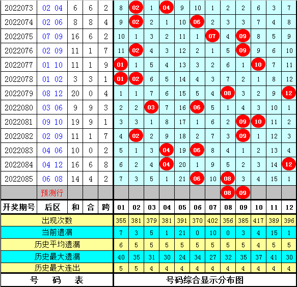 在历史同期开奖中,后区号码和值奇偶为7:8,基本持平,本期看好奇号和值出现,参考和值17。