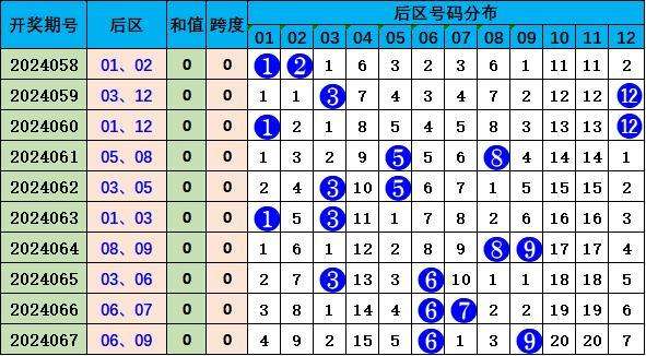 最近5期后区号码奇偶比为6:4,本期推荐关注:01、03