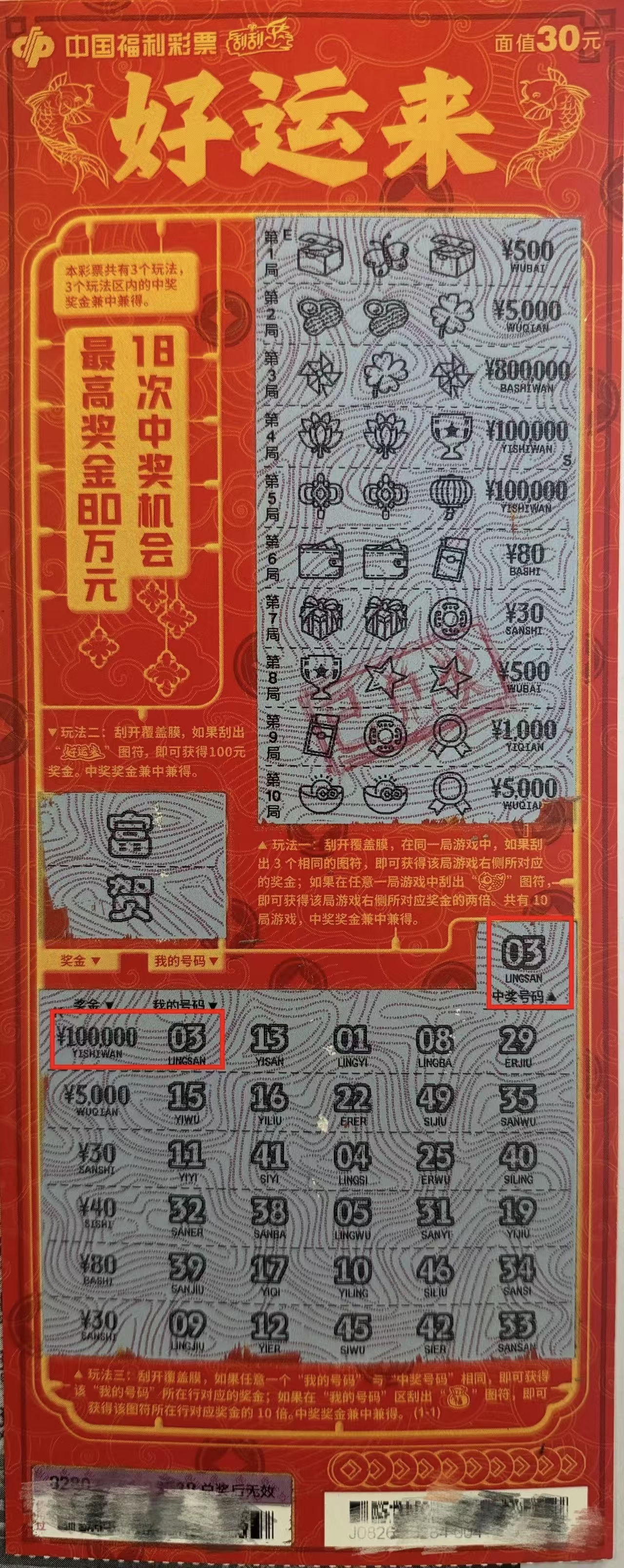 值得一提的是,"好运来"刮刮乐最高奖金可达80万元。福彩工作人员介绍,这种即开型彩票的销售额,将有20%纳入公益金统筹使用。2023年,安徽福彩已累计筹集公益金超过18亿元,主要用于扶老、助残、救孤、济困等社会福利事业。