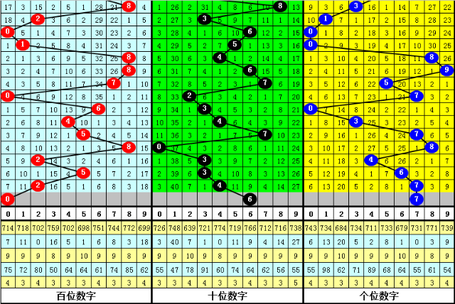 百位号码:第22152期-22156期奖号为:5-8-2-5-2,振幅为6点,分布较分散,本期看好百位走低,注意号码0。