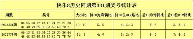 大小比分析:在历年第331期同期开奖中,奖号大小总比例为21:19,大小号码开出频次奇偶比相当,去年同期号码大小比为11:9,大小号码走势与理论差不多,今年第331期同期注意大号热出,关注大小比12:8。