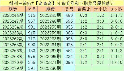 上期回顾:排列三第2023279期开出奖号391,类型为:奇奇奇、001路和小大小。