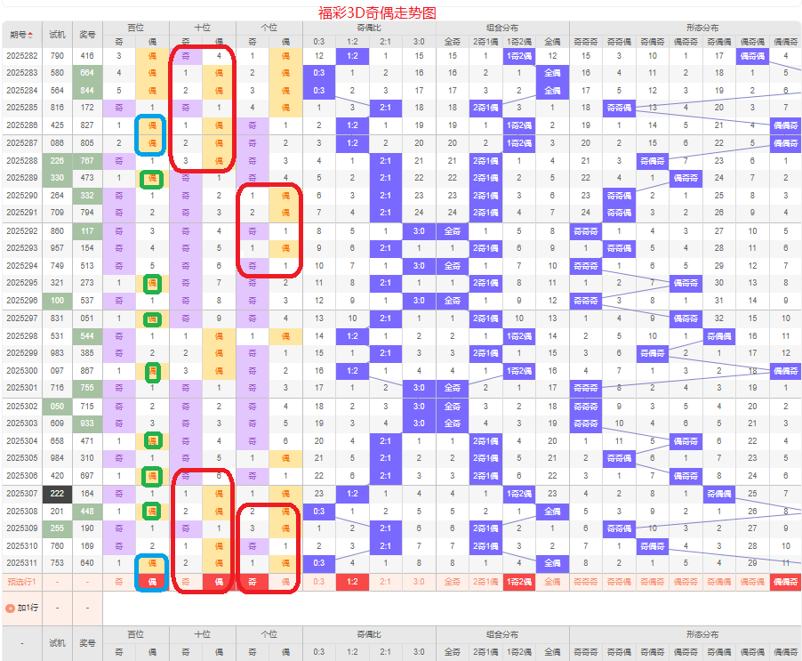 上期奇偶比是0:3,两偶的号码组合方式,从近五期的奇偶数出现情况看,奇数出现5次,偶数出现10次,奇数号码出现较少,本期侧重两偶的号码组合,侧重偶偶奇或偶奇奇的号码组合方式,根据奇偶形态做五码定位02468/02468/13579或02468/13579/13579