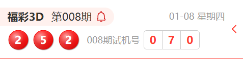 福彩3D第008期开奖结果为:252
