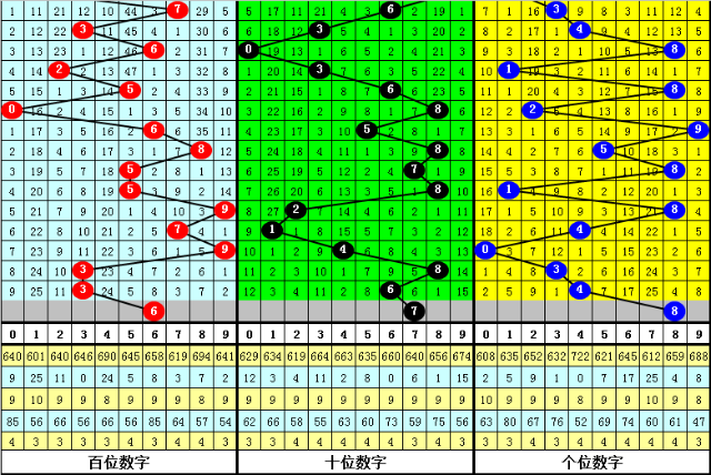 十位:上期为6,近10期012路比为1:3:6,其中0路号遗漏9期出现,本期排除0路号,注意1路号出现,关注7。